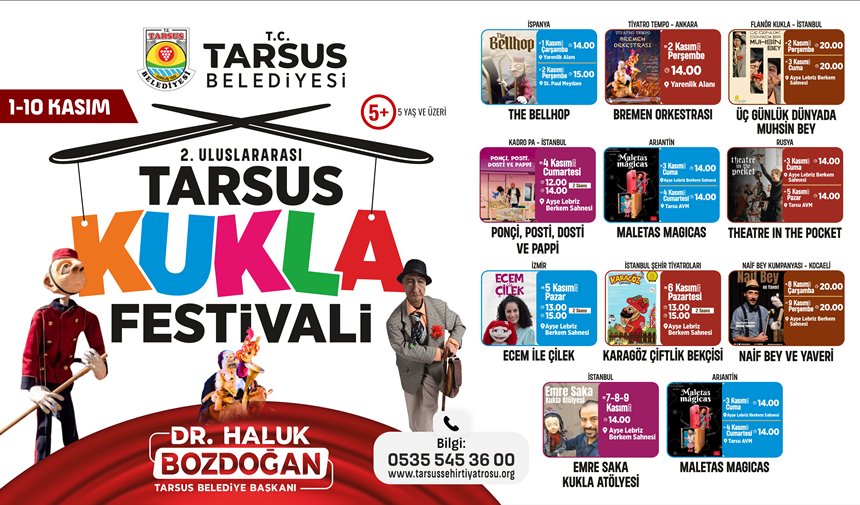 Tarsus Belediye Başkanı Dr. Haluk Bozdoğan,”10 Kasım’a kadar sürecek olan 2.Uluslararası Tarsus Kukla Festivalimize tüm halkımız davetlidir” dedi.