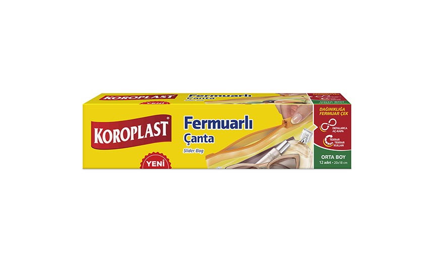 Koroplast’ın Kilitli Mutfak Torbası, Çift Kilitli Dondurucu Torbası, Fermuarlı Çantası ve Taze Tutan Poşeti kalın ve dayanıklı yapısıyla yiyecekleri güvenle saklayıp gıda israfını önlüyor. Atık miktarını azaltmak için yıkanıp defalarca kullanılabiliyor ve yaşam alanlarında düzen sağlıyor.